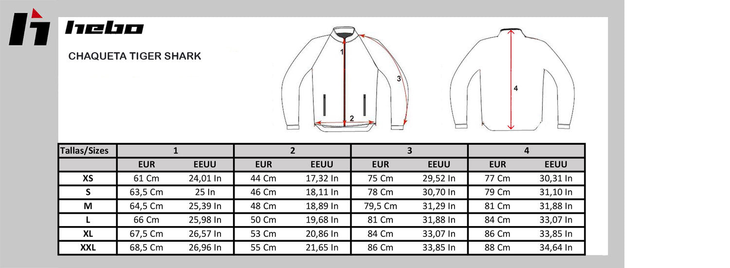 The Tiger Shark jacket is made with windproof fabrics on the front panels and thermal fabric on the back panels and half of the sleeves. It features 2 rear zipper pockets, two internal chest pockets, a reflective HEBO logo, and a YKK front zipper.Referencia: HB4021