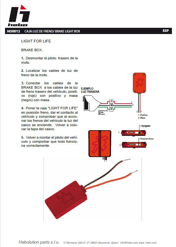 With the brake light position and attaching a transmission box to your Bike you will have a second brake light, which will be activated at the same time as the brake light of your Bike.