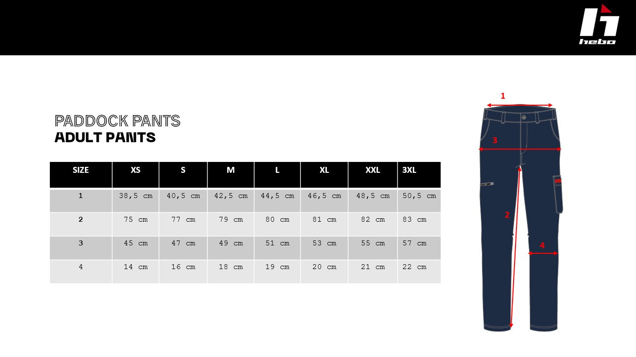 Pantalón largo Paddock de Hebo confeccionado en tejido elástico (92% nylon y 8% elastano), cómodo y resistente, con bolsillo cargo lateral para mayor funcionalidad.